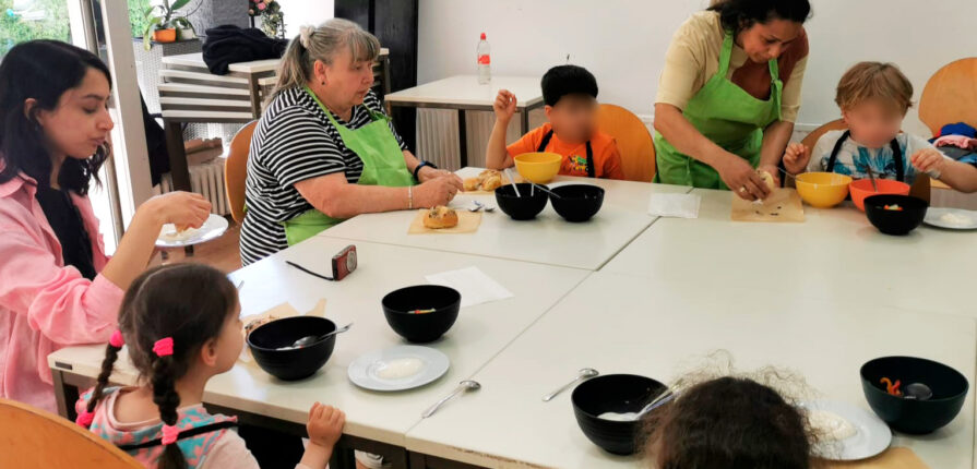 Aller guten Dinge sind drei… nach der Kiwi Kita und der Kita aus der Réaumurstraße besuchten uns letztens auch die Kinder der Kita Sternenlichter im BUSSTOP Familienzentrum. Diesmal haben wir Körnerbrötchen und Hefezöpfe gemacht, dazu Quark und Gemüsesticks. Lecker! Die Aktion war wieder Teil unseres generationsübergreifenden Angebotes und wurde nicht nur von den Erziehenden und unserem Team, sondern auch von ehrenamtlichen Senior:innen begleitet. Ein herzliches Dankeschön an die Helfenden!