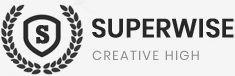 Ein zentriertes Logo zeigt ein Schild mit einem S darin, umgeben von Lorbeerzweigen, neben dem Text SUPERWISE in Fettdruck und CREATIVE HIGH in kleineren Buchstaben darunter – perfekt für Ihr Website-Design oder Ihre Startseite.